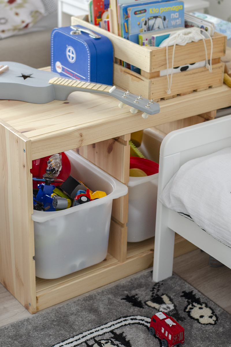 wystarczyć jeden z plastikowymi pojemnikami i półka na książeczki.
